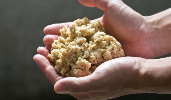 こだわりの天然塩、川辺の水、大豆、麦麹をまんべんなんく合わせ、桶で仕込みます。3か月の熟成期間、麹菌の働きで畑の肉と呼ばれる大豆が分解され、旨さの元に。