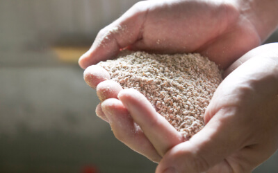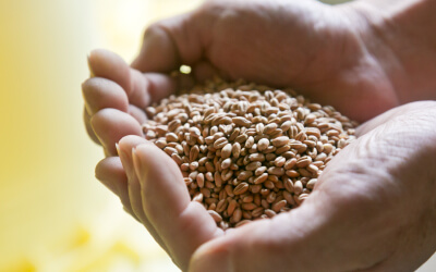 自社農園で丹精した大麦。麦の出来具合が麹の良さの決め手。湿度に弱い大麦だから、雨や風、お天道様を仰いでの畑作業、収穫時期も春雨の時期が過ぎてから。