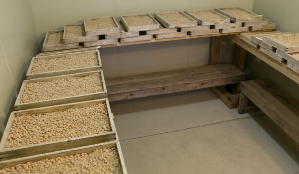 温度・湿度を保った冷蔵庫で1カ月から1ヶ月半熟成させ、パッケージに充填して皆様へお届けします。